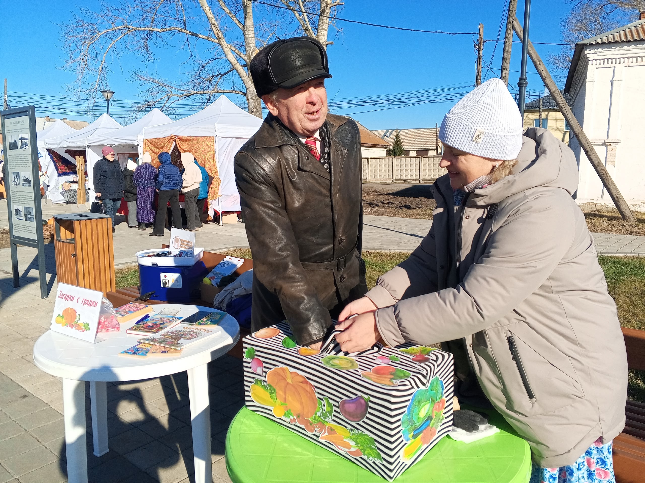 Площадка «Чёрный ящик» предлагала гостям и жителям села определять овощи и фрукты, помещённые в закрытый тёмный контейнер, исключительно на ощупь. Эта игра добавила загадочности и веселья в атмосферу ярмарки.