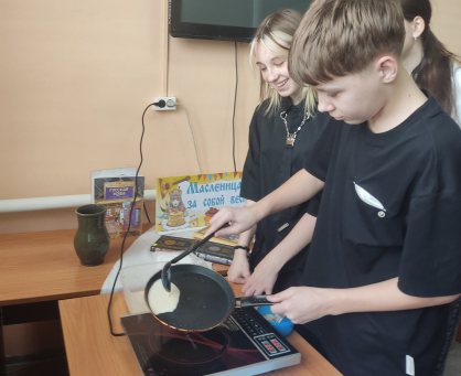 Самым интересным моментом стало совместное приготовление домашних блинов. Несмотря на поговорку «первый блин комом», ребята приятно удивились своим результатам.