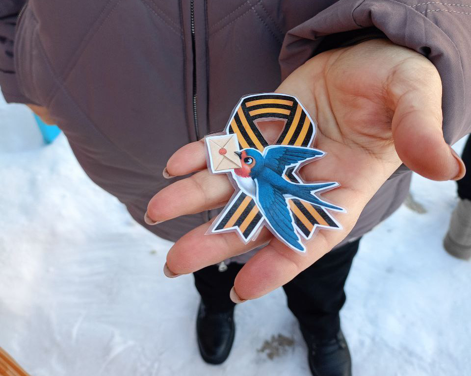 Это был знак ожидания добрых вестей, символ надежды на скорую победу и встречу с близкими. Мы рассказали эту историю и вручили прохожим такие значки — как ниточку, связывающую нашу мирную жизнь с их жизнью, полной мужества.
