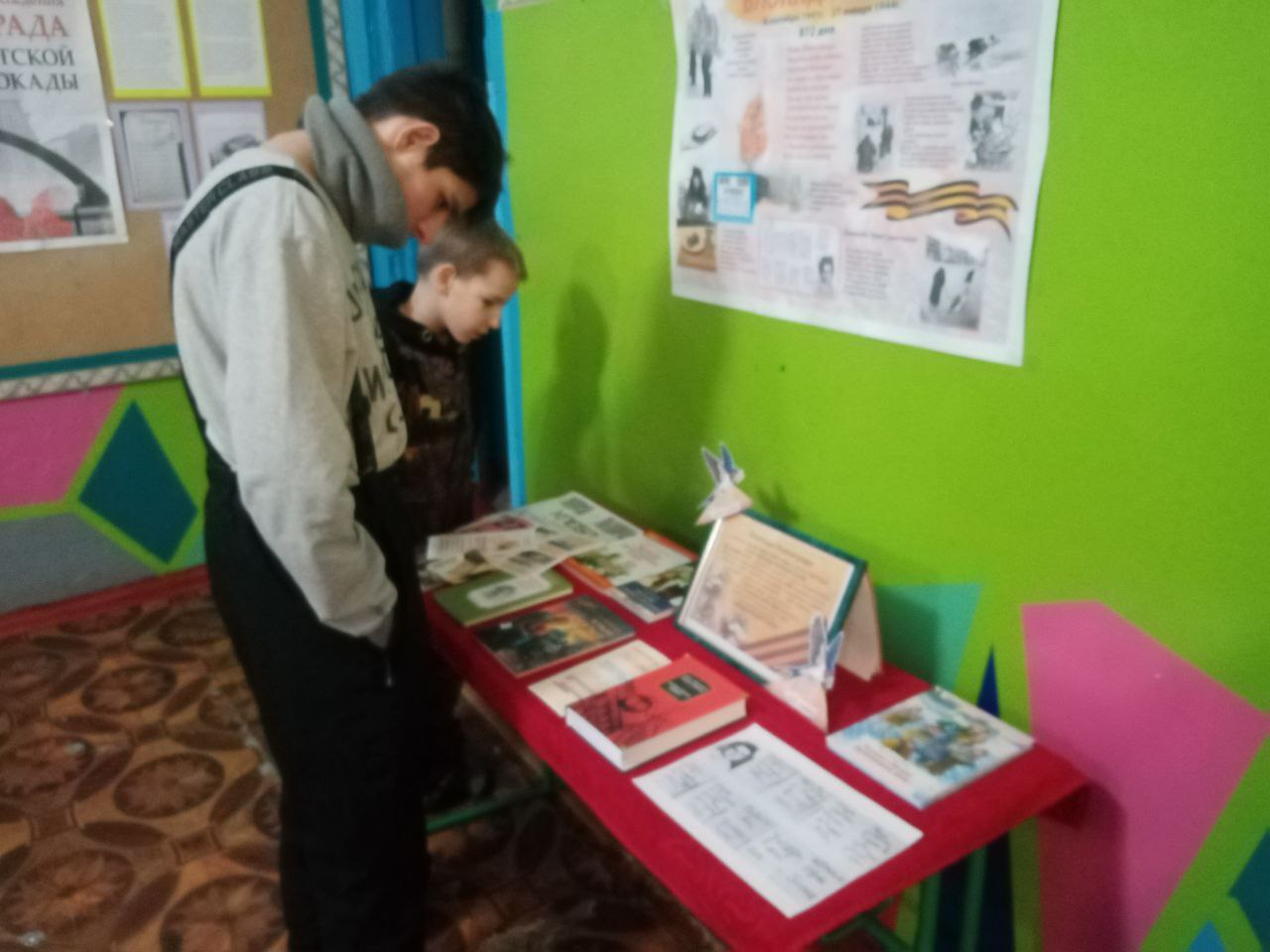 Для участников была организована специальная книжная экспозиция «Непокоренный Ленинград», представлявшая произведения литературы, посвящённые блокаде. Рядом разместилась выставка бытовых вещей военных лет: керосиновая лампа, старый чайник, весы и другие предметы, сохранившиеся как свидетельство суровых испытаний.