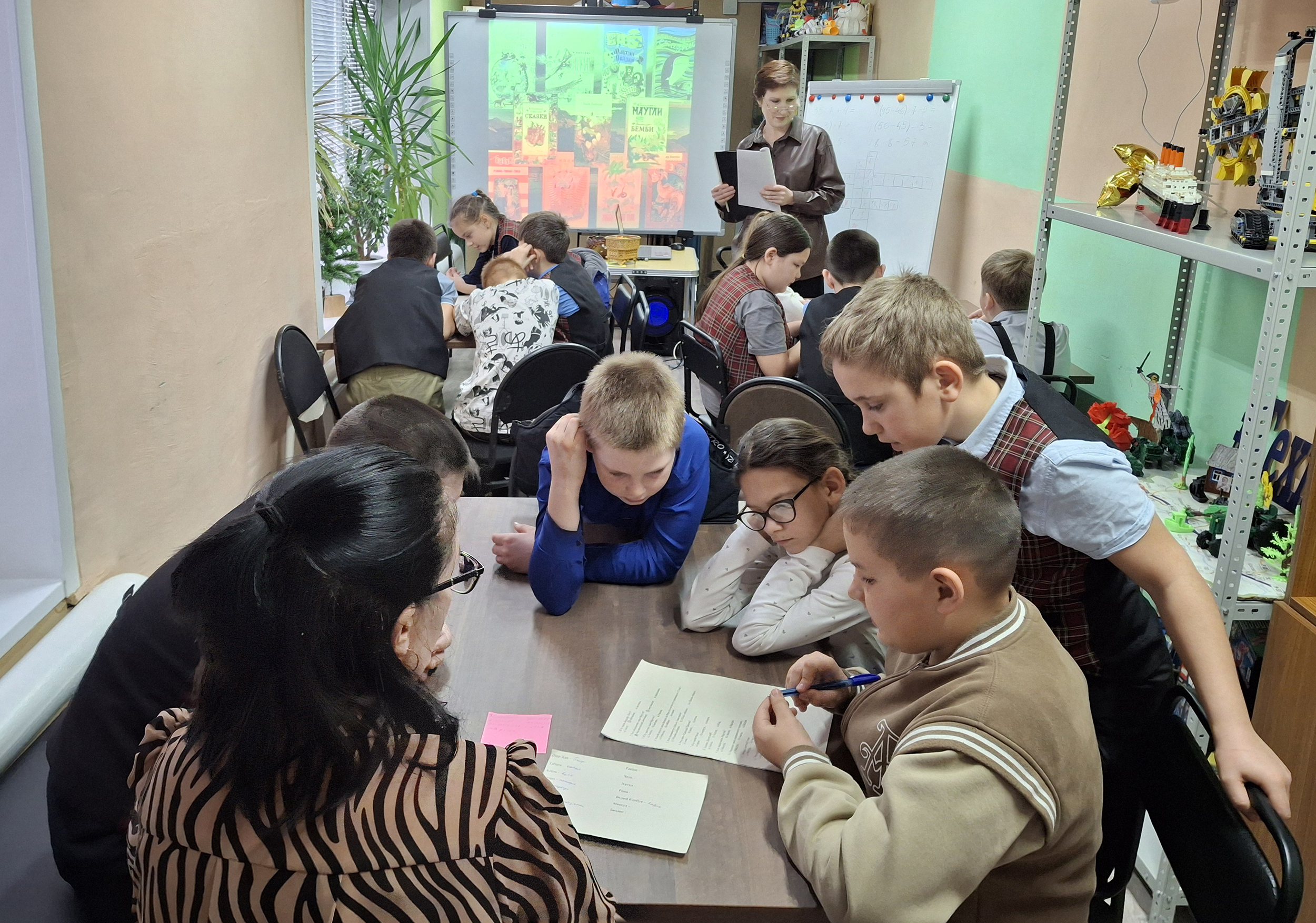 Все вместе вспомнили историю о том, как индийский мальчик оказался в джунглях и стал своим среди зверей, о его друзьях и недругах, о суровом, но справедливом «законе джунглей». А потом, разделившись на три команды, девчонки и мальчишки отправились странствовать по диким джунглям в компании героев Киплинга. В конкурсе «Угадай героя» ребята решали примеры, в следующем туре — «Взберись на пальму» — разгадывали кроссворд, отвечали на вопросы «О ком эти строчки?»,