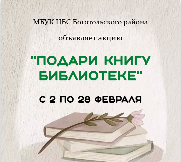 Со 2 по 28 февраля приглашаем жителей Боготольского округа принять участие в акции «Подари книгу библиотеке». Она приурочена к Международному дню книгодарения, который отмечается 14 февраля.