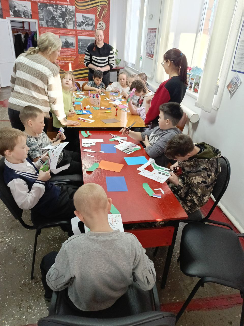 В продолжение мероприятия дети, вооружившись ножницами и картоном, с удовольствием принялись делать праздничные открытки для своих пап, дедушек и братьев. Атмосфера мероприятия наполнилась творчеством и радостью: звучали шутки, раздавался весёлый смех, на столах быстро появились красивые открытки.