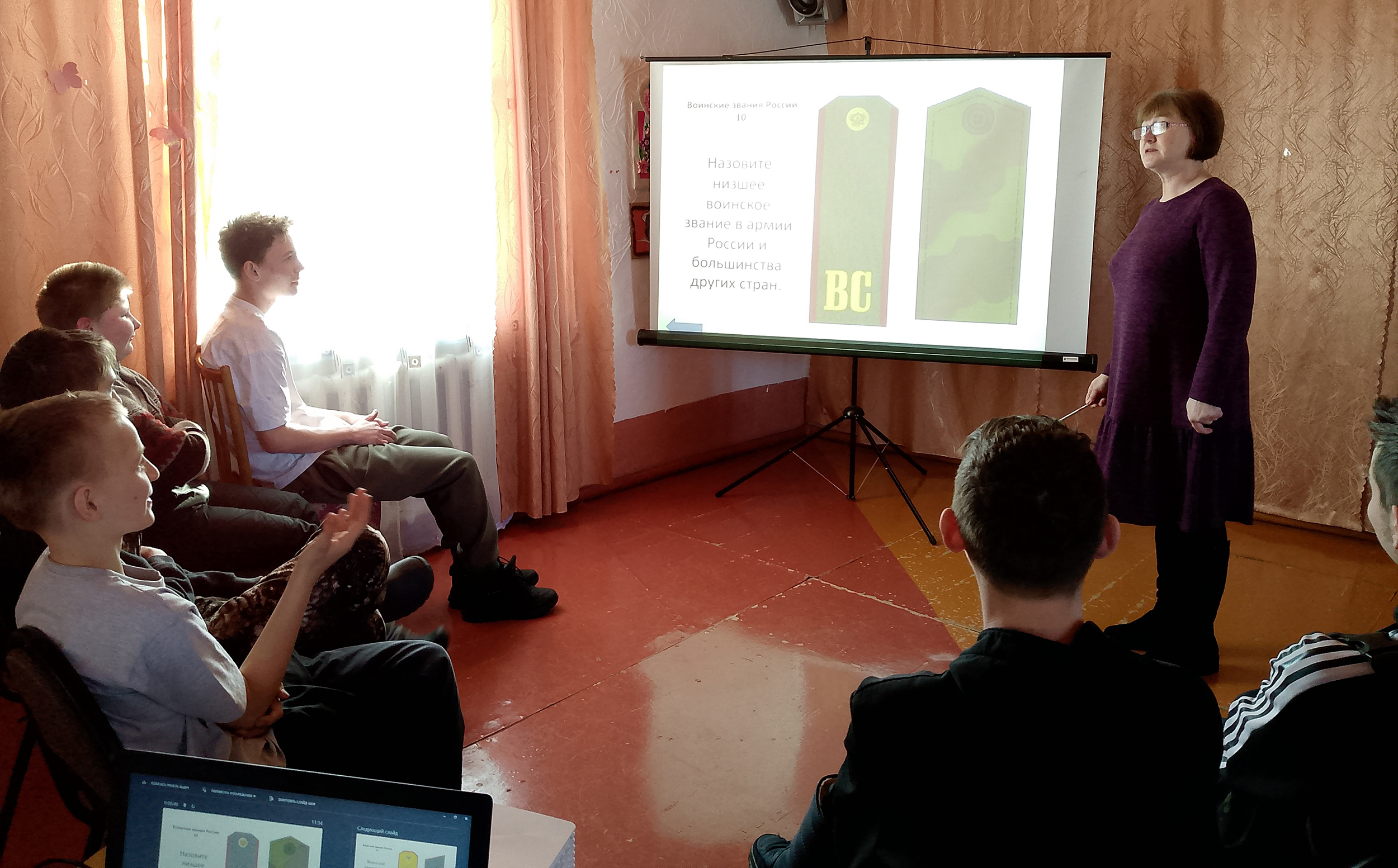 22 февраля в Булатовской библиотеке собрались деревенские мальчишки, чтобы принять участие в увлекательной интерактивной игре, приуроченной ко Дню защитника Отечества. Мероприятие было проведено в сотрудничестве с клубом.