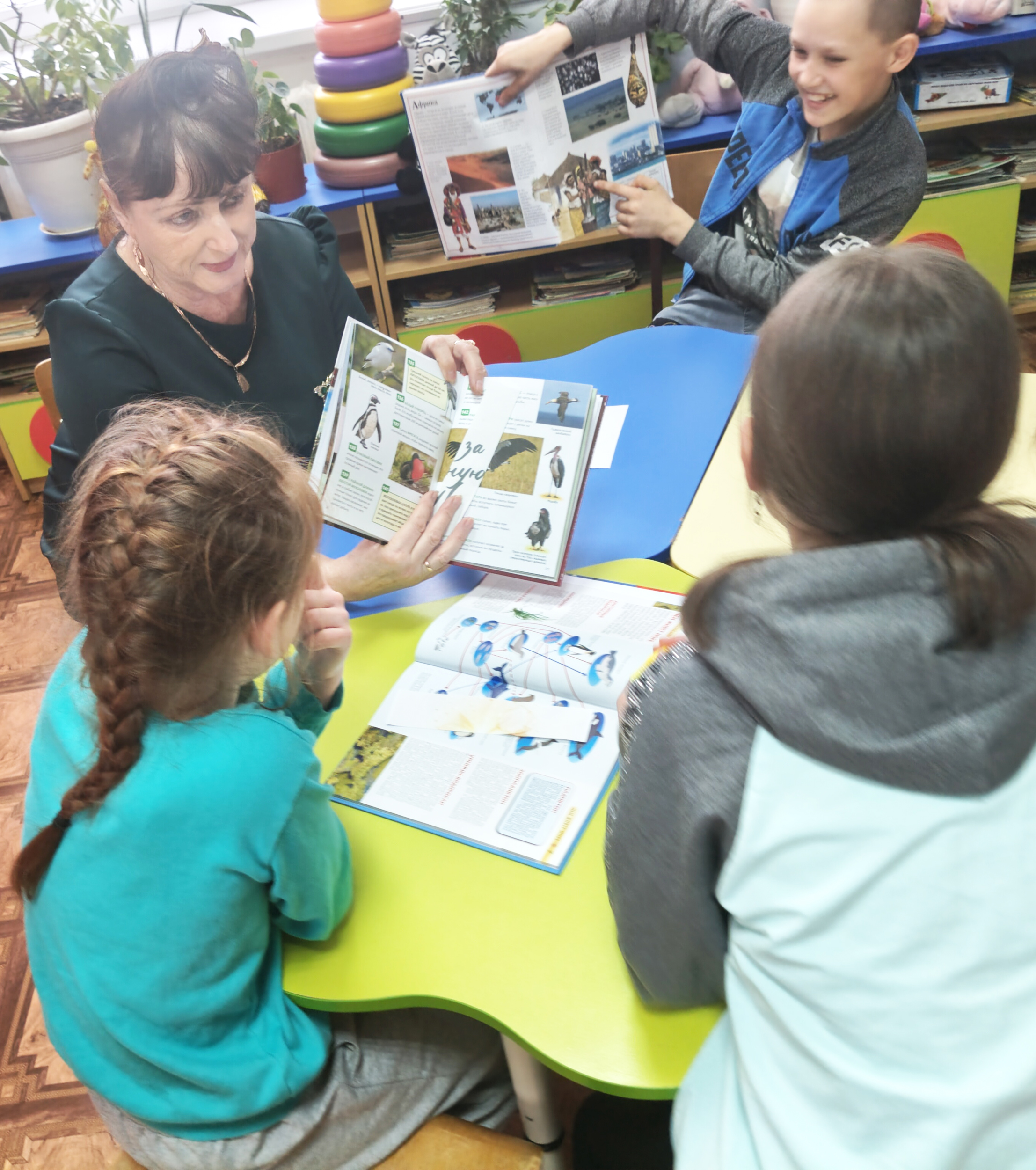 Дети выяснили, что при рыхлом снеге пингвины скользят на животе, отталкиваясь лапами и крыльями, и могут нырять на глубину до 500 метров — для этого они набирают в клюв камни для тяжести. Оказалось, что у пингвинов, как у людей, есть ясли: малышей оставляют с воспитателем. Ещё один интересный факт: у пингвинов хороший слух, а вот зрение на суше слабовато, зато в воде они видят отлично. Пьют пингвины солёную воду, а лишнюю соль выводят специальные железы. А вот эта информация вызвала у детей смешанные чувства — и грустно, и весело: если птенец погибает, мама может украсть чужого.