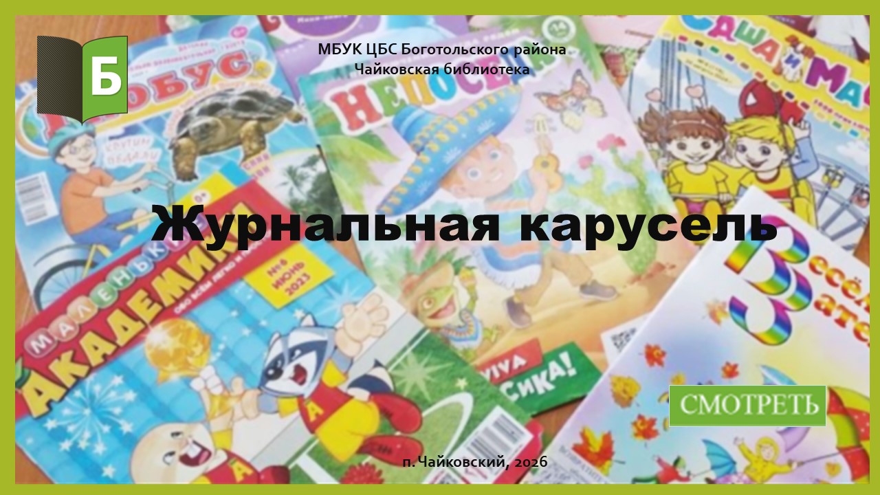 В России издается много детских журналов – познавательных, развивающих, развлекательных, исторических. «Журнальная карусель» крутится, предлагая детям всё новые сюжеты, задания и открытия. Листая страницы, юный читатель учится, удивляется, смеётся, фантазирует — и каждый раз находит что?то своё, что останется с ним надолго. Эти и другие журналы вы можете взять в библиотеках Боготольского района.